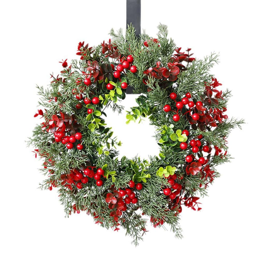 Рождественские декоративные элементы: Подвеска-венок на входную дверь, Венок из кипариса и красных ягод, Декоративная подвеска для двора — купить товар онлайн с бесплатной доставкой по всему миру!