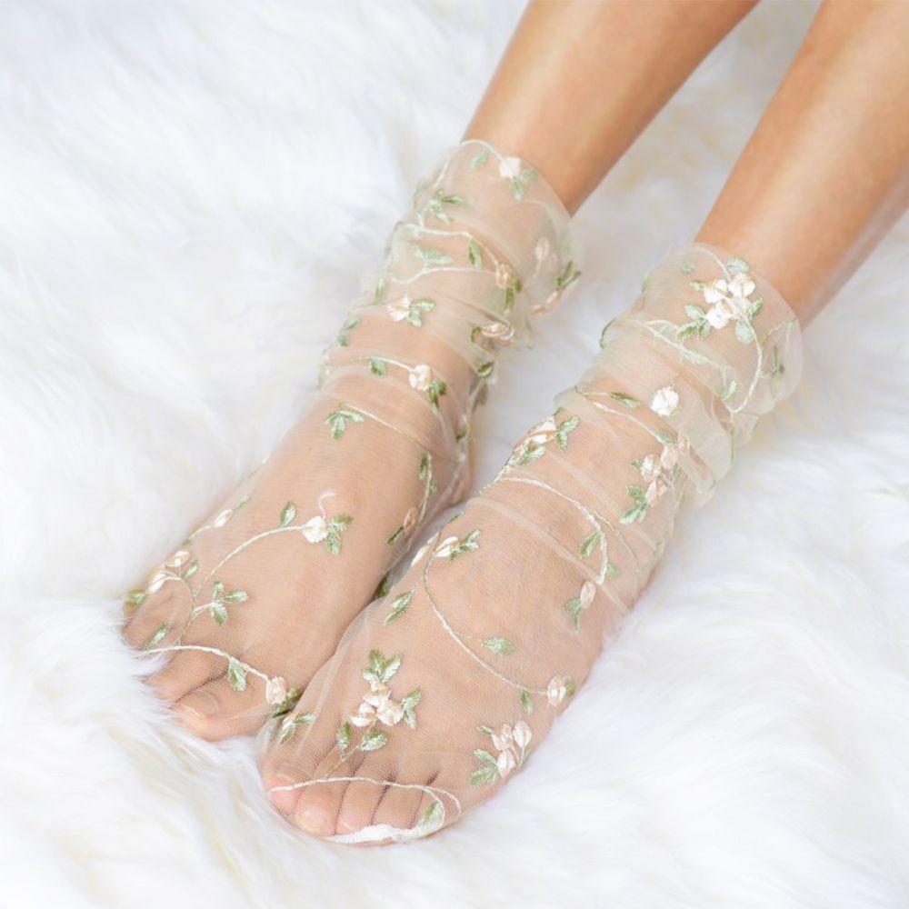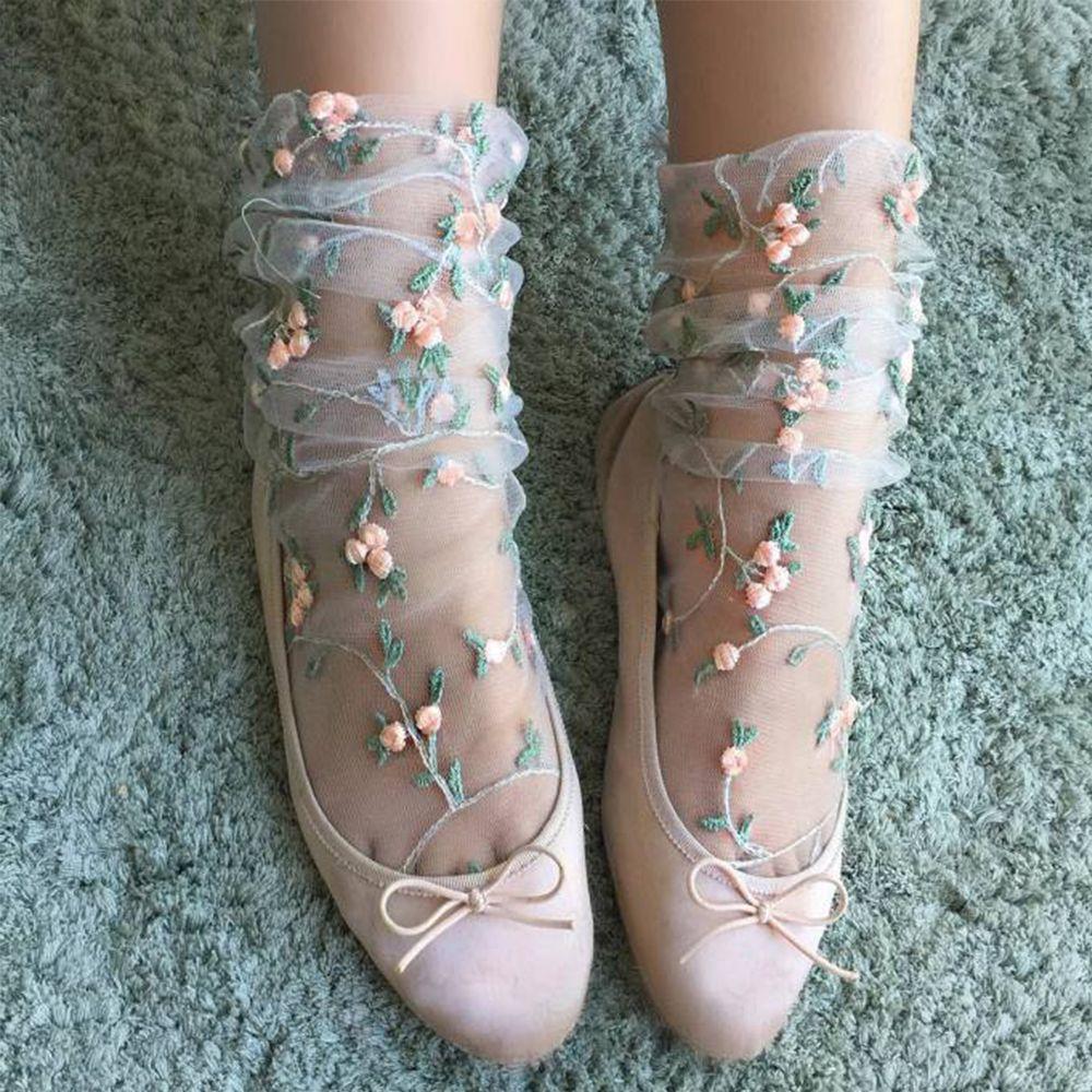 Модные летние тонкие носки-сетка с цветочным узором, прозрачные длинные носки, носки с цветами