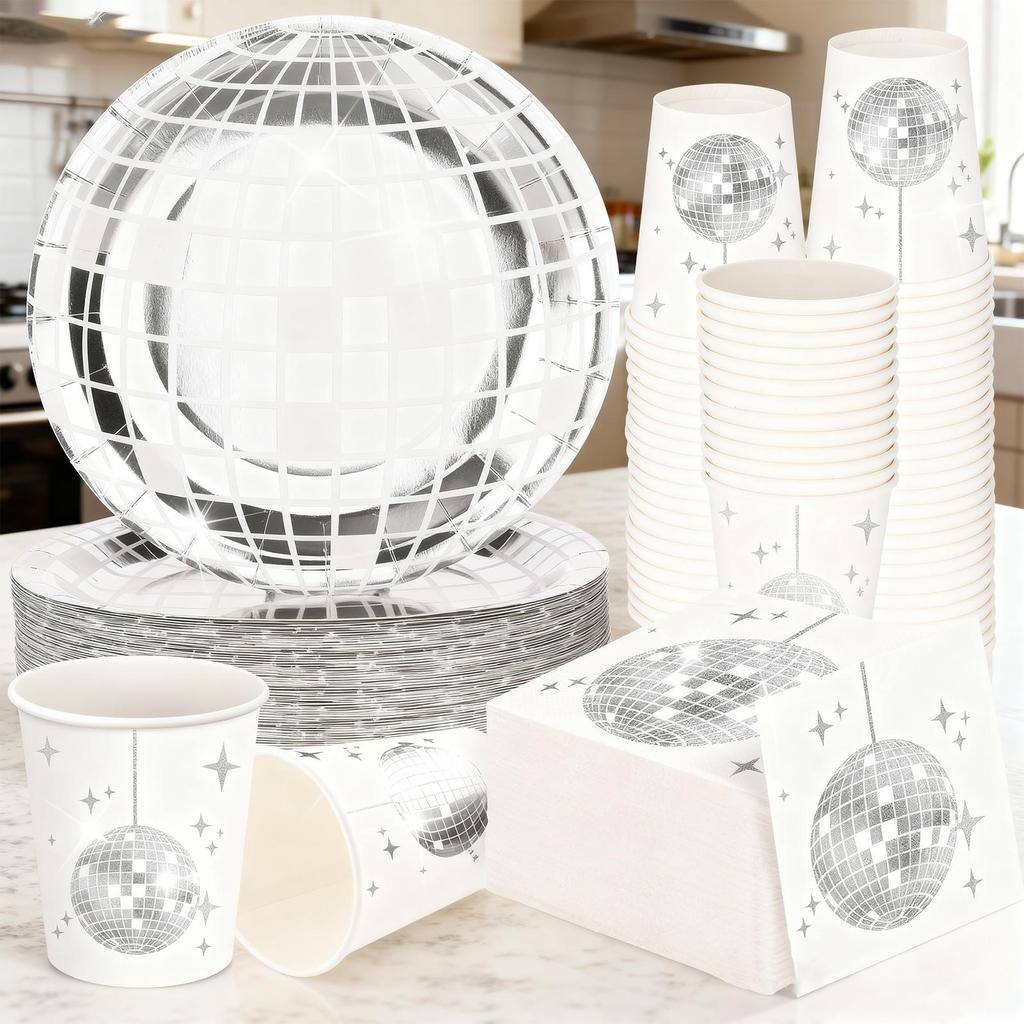 Одноразовый набор посуды для диско-вечеринки, тарелки, бумажные стаканчики, баннер для украшения тематической вечеринки по случаю дня рождения, гирлянда, флажки для торта, воздушные шары - набор
