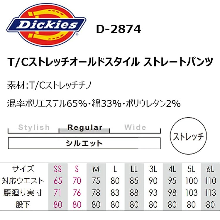 Dickies Стрейч Прямые Брюки Старого Стиля Размер D-2874 Т/С (LL, 13, Черный)