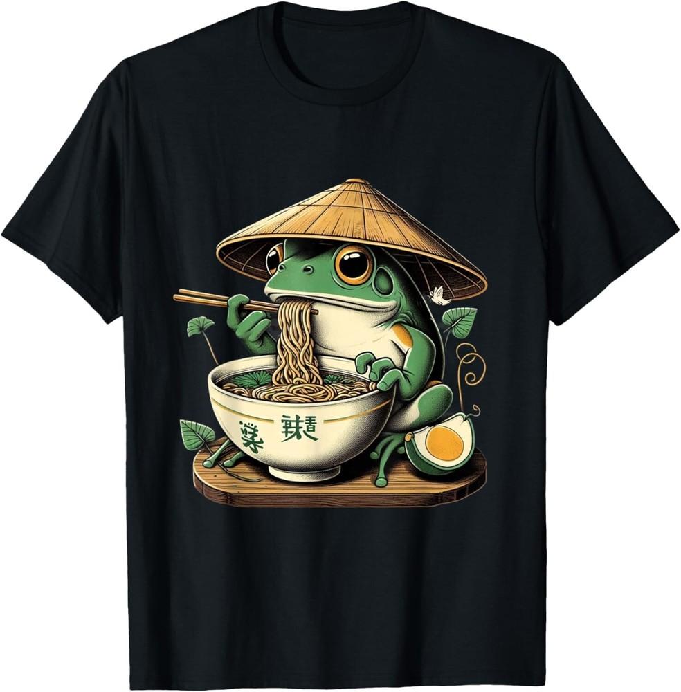 Лягушка ест рамен Каваи Неко Японская лапша Аниме Любители Подарок Унисекс Футболка