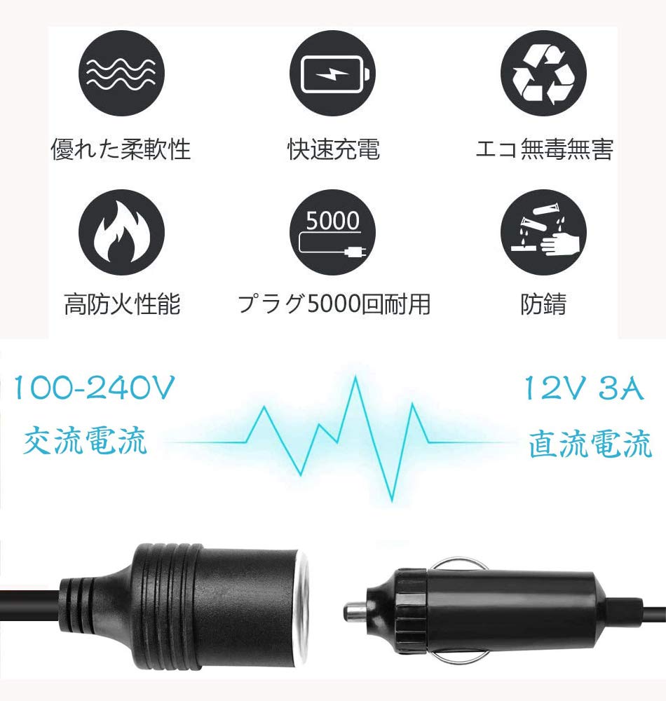 [Характеристики продукта] Входное напряжение: 100-240 В 50/60 Гц Выходное напряжение: ; Выходной ток: 3A (36W); Внешние размеры: 3.3 x 1.9 дюйма (85 x 48 x 30 мм); длина: приблизительно. 39,4 дюйма (100 см); Пожалуйста, не используйте этот продукт на автомобильной электронике с номинальной мощностью (такие как воздушный насос, воздушный компрессор, шинный насос), и т.д