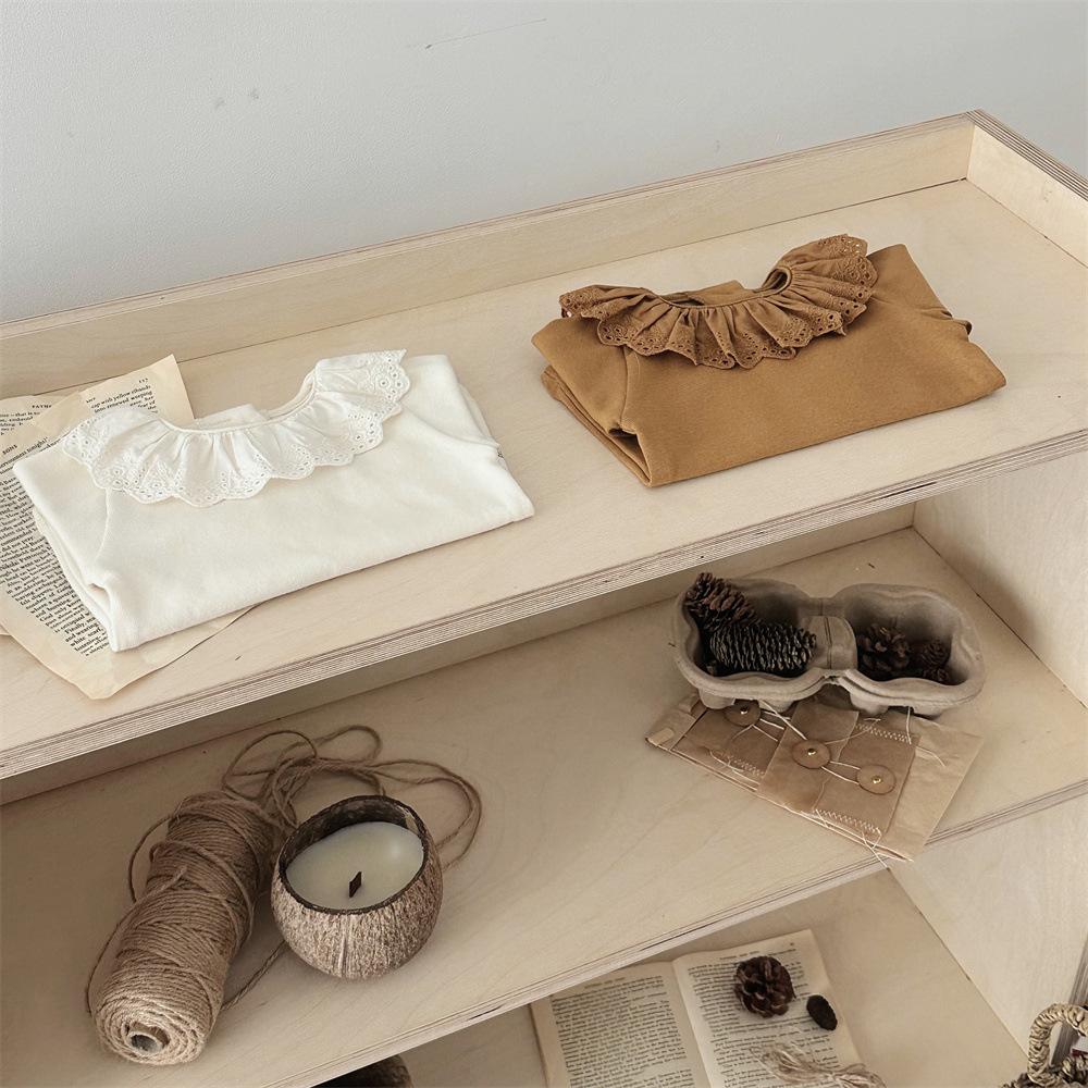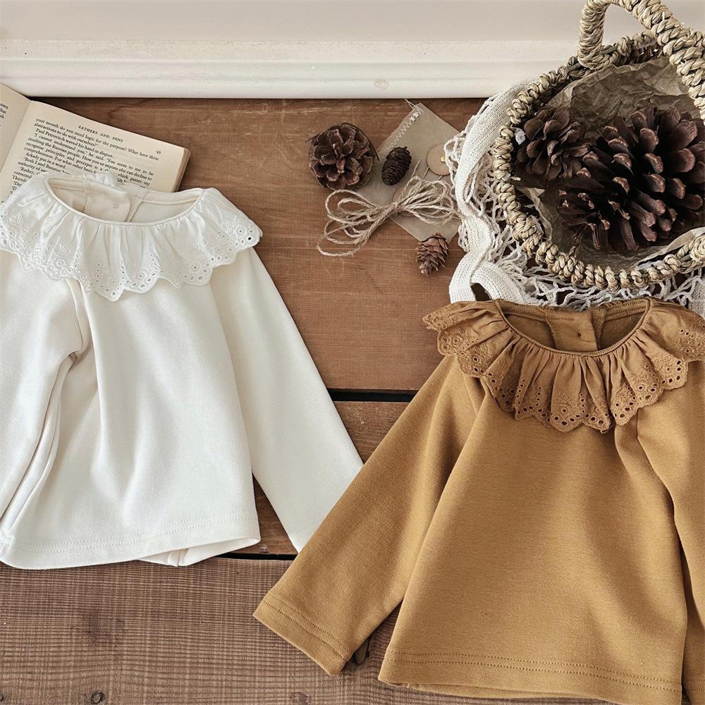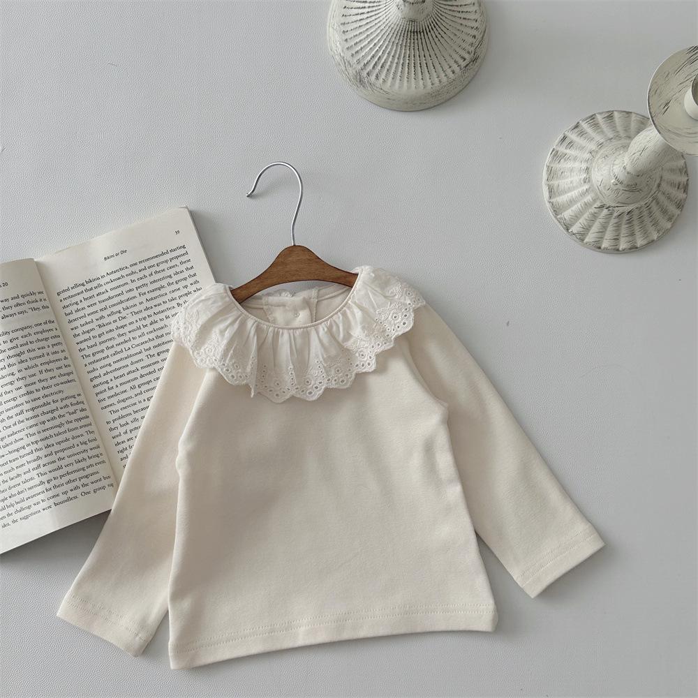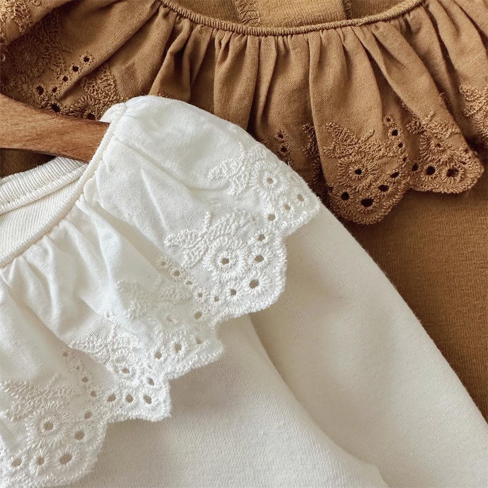 Весенне-осенний топ для младенца девочки с вышивкой, кружевом и воротником с оборками