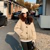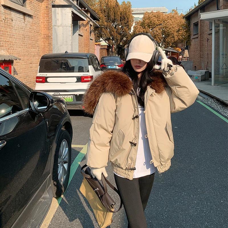 Женская короткая ветрозащитная теплая зимняя куртка с капюшоном и большим меховым лацканом — купить товар онлайн с бесплатной доставкой по всему миру!