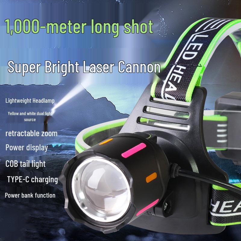 Светодиодный лазерный фонарь с двумя режимами света, перезаряжаемый налобный фонарь - Суперяркий, длительное время работы от аккумулятора, идеально подходит для ночной рыбалки