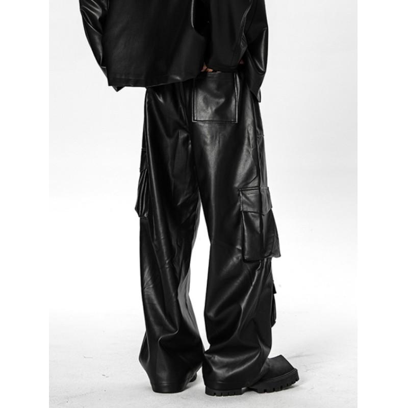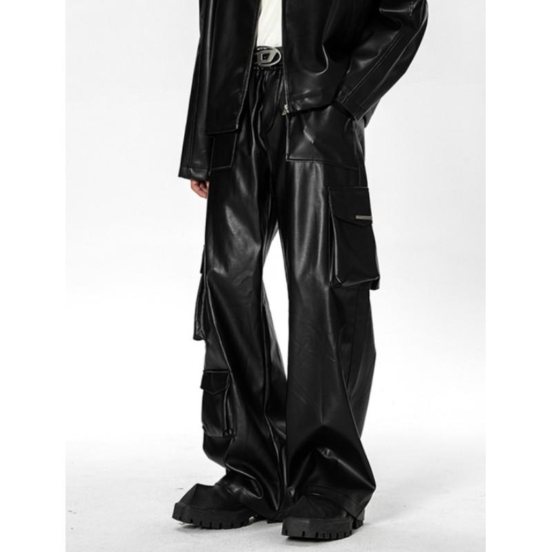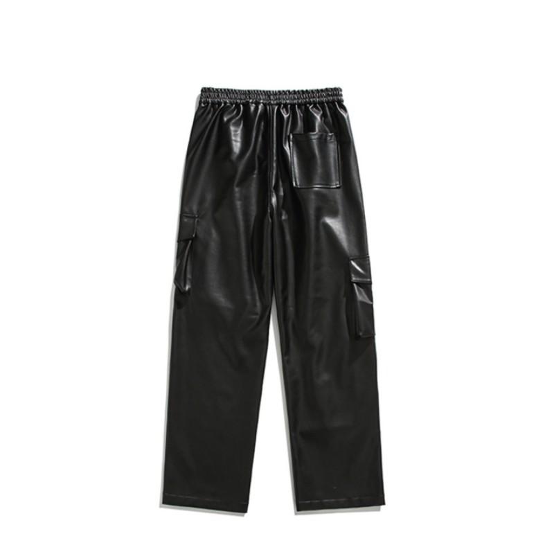 Мужские осенние хип-хоп панк брюки из ПУ кожи, уличные брюки карго с несколькими карманами