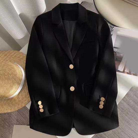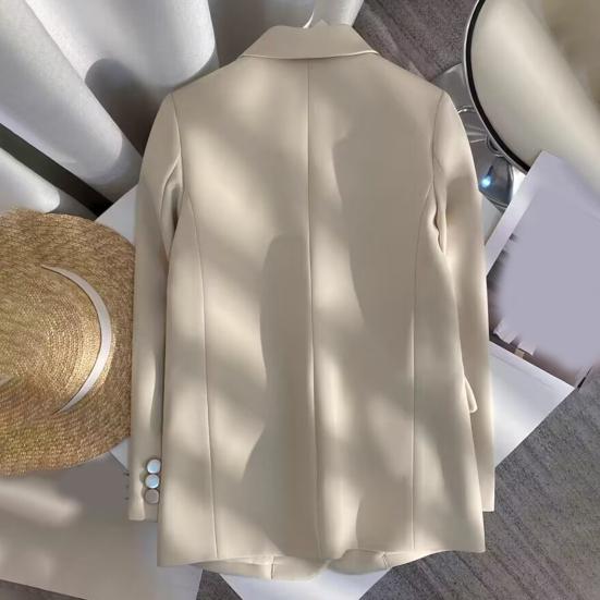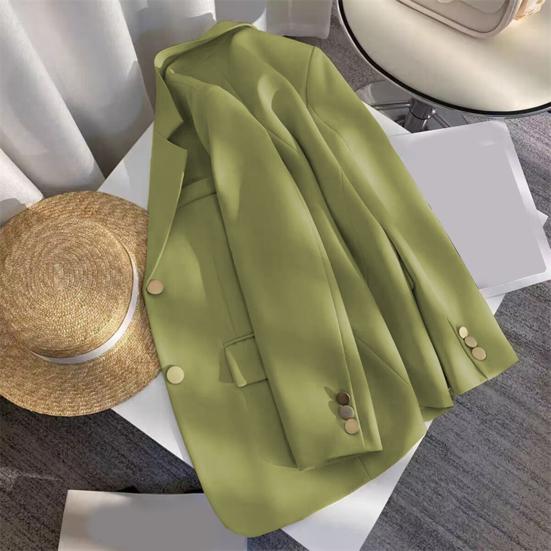 Женский пиджак – универсальное и стильное дополнение вашего гардероба.. Эта куртка свободного кроя с классическими лацканами и длинными рукавами имеет повседневный свободный крой и застегивается на две пуговицы.. Однотонный дизайн придает ему ощущение высокого класса и делает его идеальным для различных случаев.
