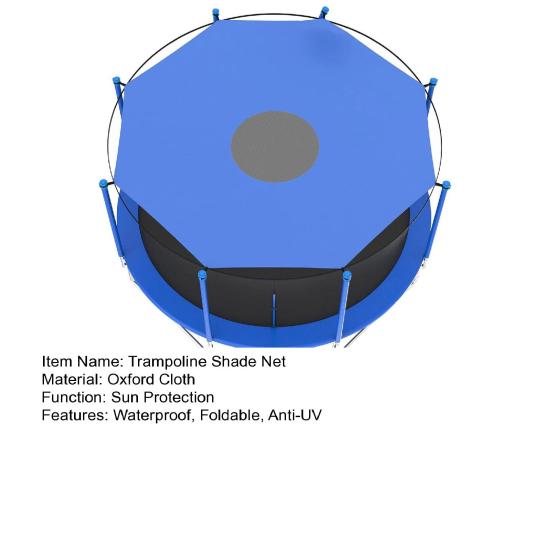 Наш солнцезащитный козырек, изготовленный из прочной ткани Оксфорд и подкладки с УФ-покрытием, гарантирует длительную защиту от атмосферных воздействий.. Складная конструкция упрощает установку, обеспечивая надежное соединение и требуя минимального места для хранения.. Поднимите удовольствие от катания на батуте с помощью нашей надежной и удобной затеняющей сетки для батута.