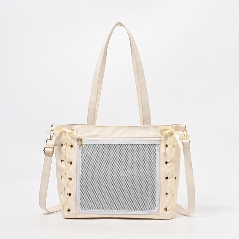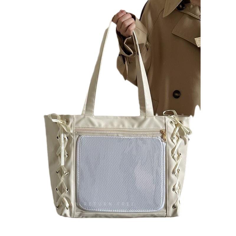 Сумка-ита из мягкой кожи в японском стиле с лентой - Большая вместимость, прозрачная, в стиле аниме, на одно плечо для женщин и девушек