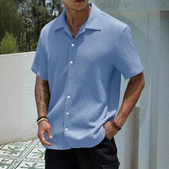 Материал: Эти мужские рубашки, изготовленные из полиэстера премиум-класса, имеют классический дизайн с однотонными цветами и лацканами, создавая простой, но стильный вид, излучающий изысканность и универсальность.