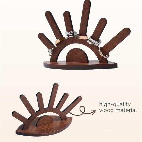 Держите свои кольца в порядке и красиво демонстрируйте их с помощью этой стильной подставки для колец.. Этот держатель для колец, изготовленный из высококачественного дерева, имеет привлекательный дизайн от сглаза, символизирующий защиту и положительную энергию.. Уникальная текстура древесины придает нотку элегантности любому стилю декора, от современного до деревенского.