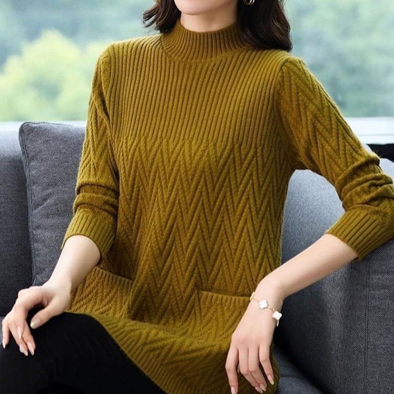 Женский свитер Осень Зима Утепленный Теплый Вязаный Эластичный С Длинным Рукавом Оверсайз Топы