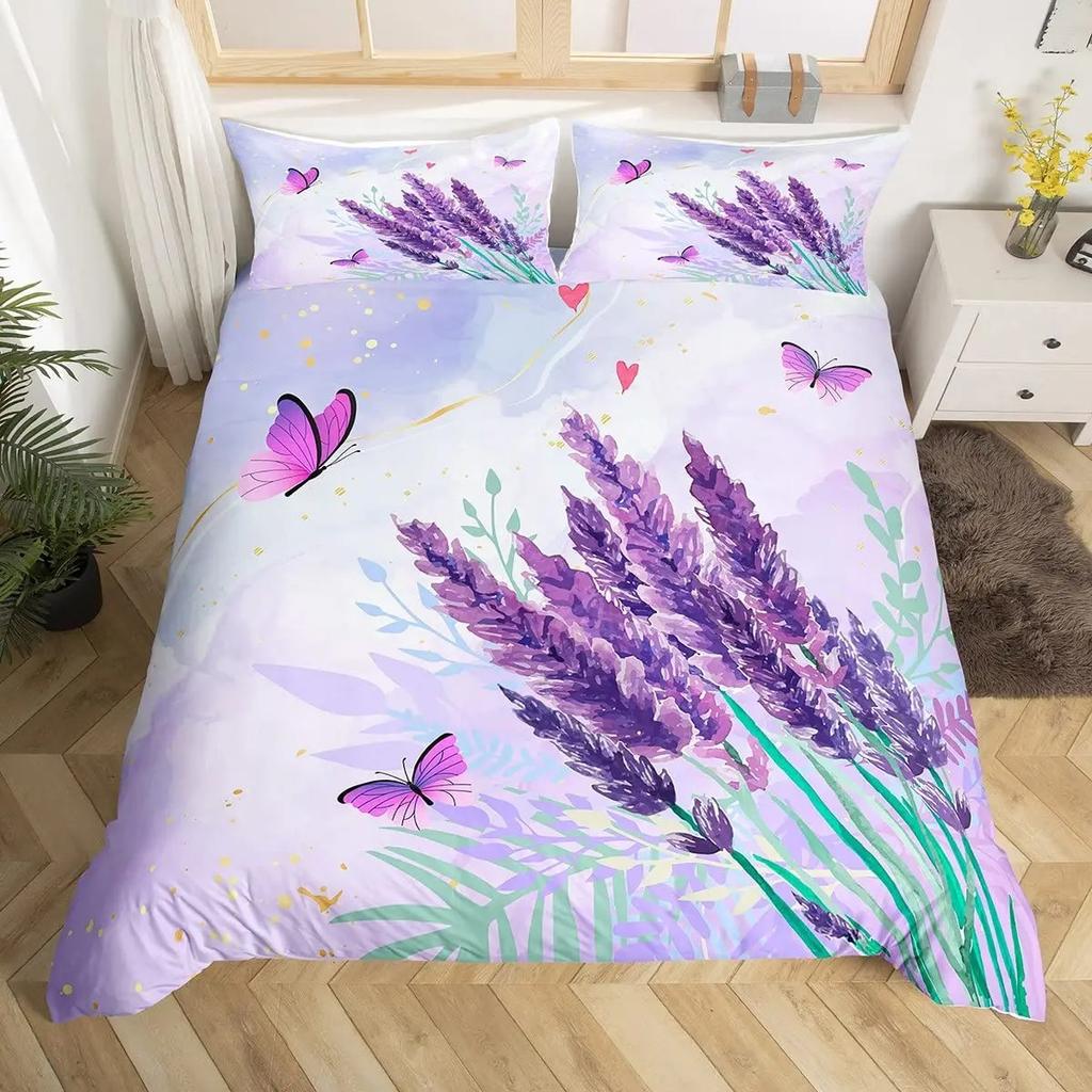 Пододеяльник цвета лаванды King Queen, комплект постельного белья с фиолетовыми цветами и бабочками, абстрактные мраморные цветочные одеяла, покрывало из полиэстера