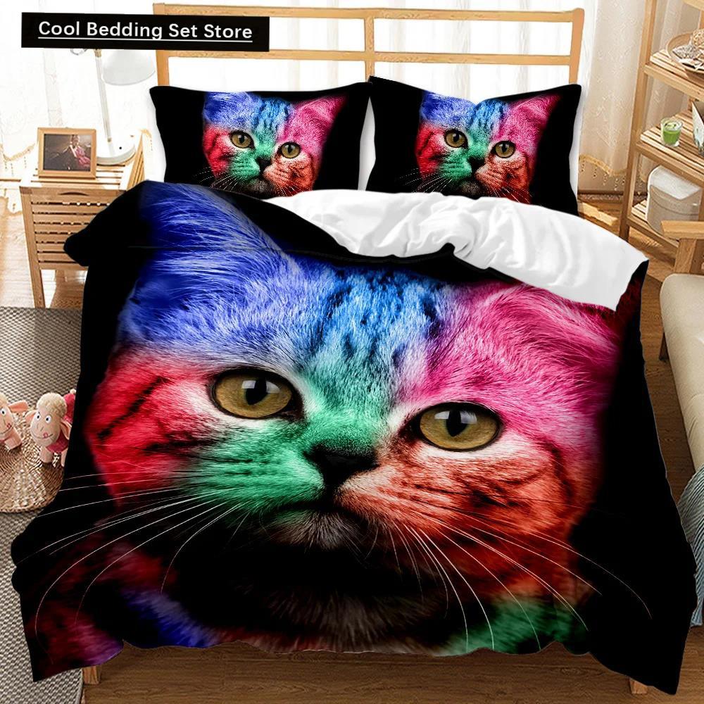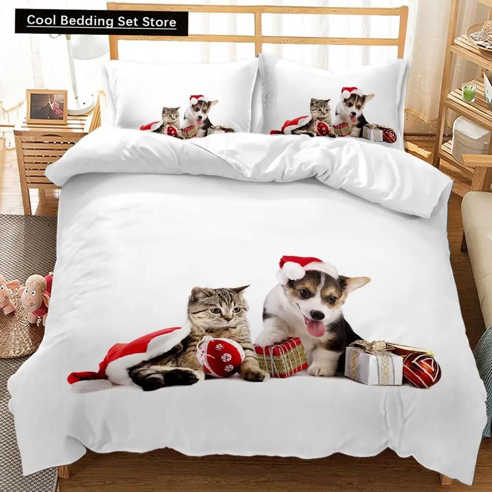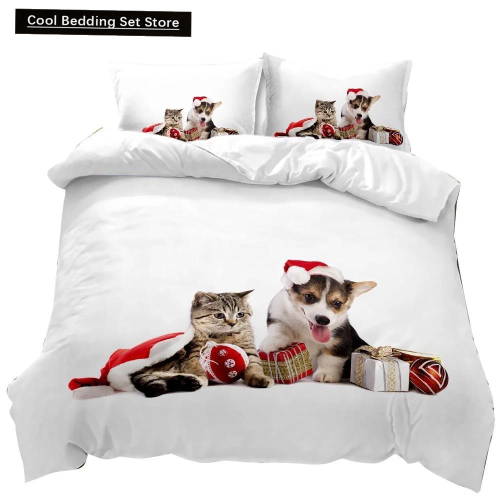 Пододеяльник с изображением кошек и собак, рождественский комплект постельного белья с изображением животных для детей и подростков, двуспальный, размера «king-size», полиэстеровый чехол-одеяло