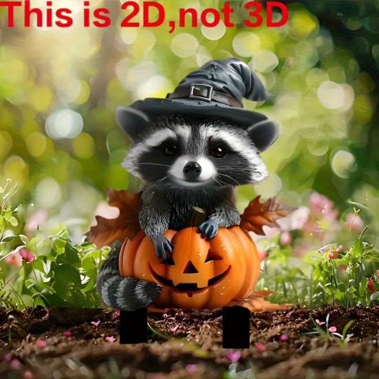 Уникальный дизайн енота: Сочетая очаровательного енота с тыквой на Хэллоуин, этот садовый колышек выделяется своей причудливой и забавной эстетикой, идеально подходящей для создания игривой атмосферы.