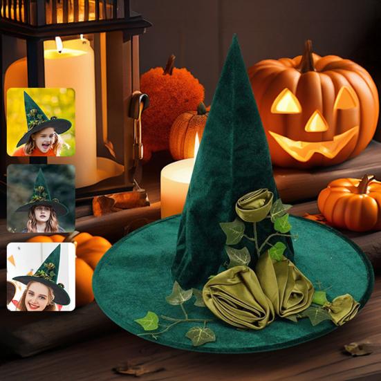 Раскройте свою внутреннюю чародейку с изысканным трехмерным зеленым кружевом в виде розы на этой шляпе ведьмы.. Его волшебное очарование добавляет вашему костюму нотку тайны, выделяя вас на любом мероприятии.