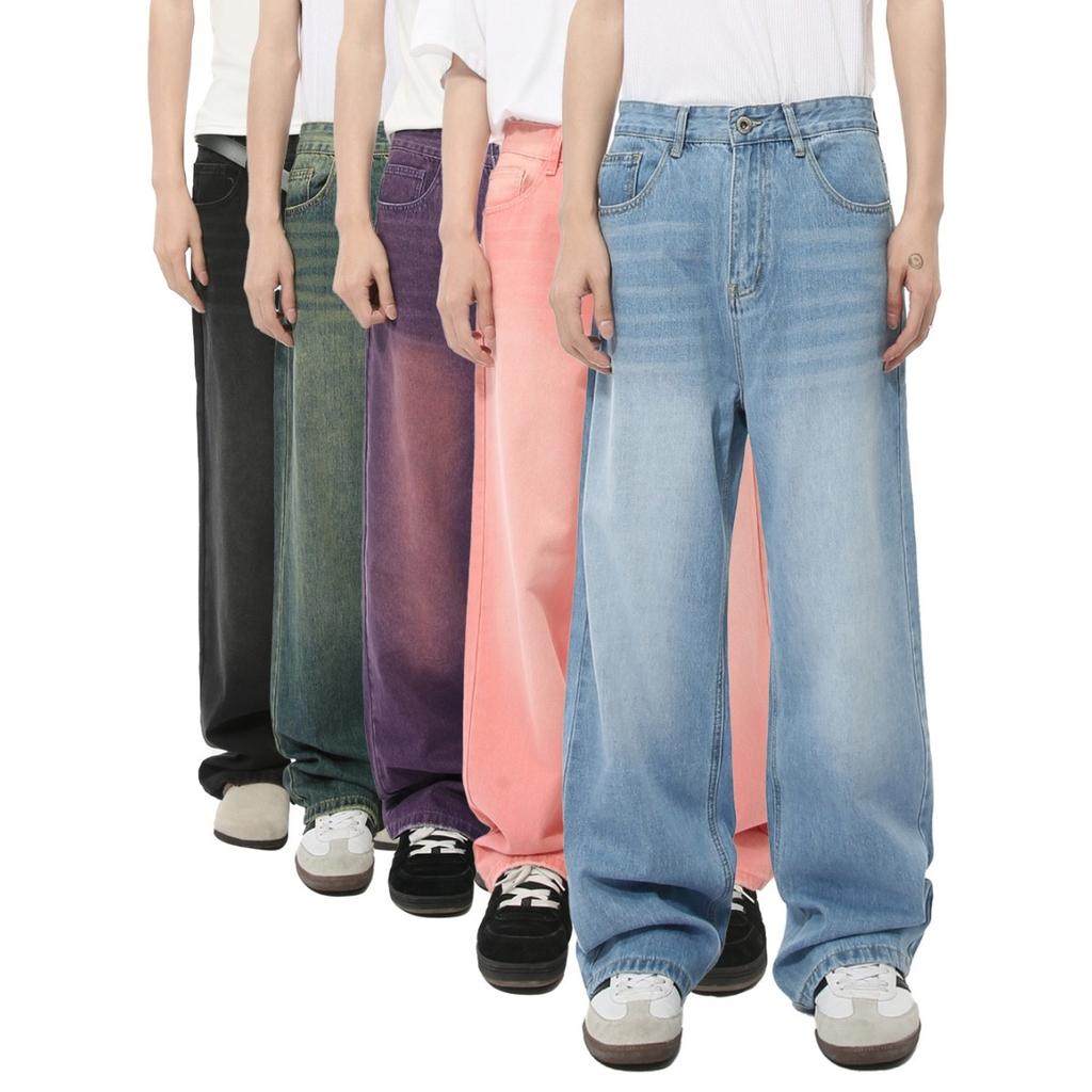 Мужские джинсы Новые Корейские Личность Прямые Широкие Штанины Джинсовые Брюки Мода Винтаж Мужские Брюки