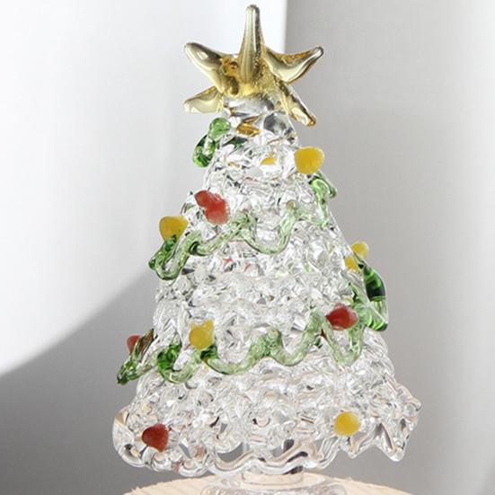 Стеклянная Рождественская Елка Мини Настольная Рождественская Елка Фигурка со Звездой Навершием для Зимнего Праздничного Стола Каминной Полки Домашнего Декора