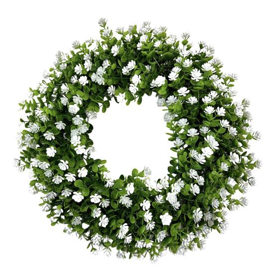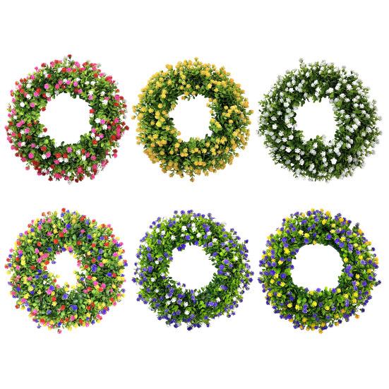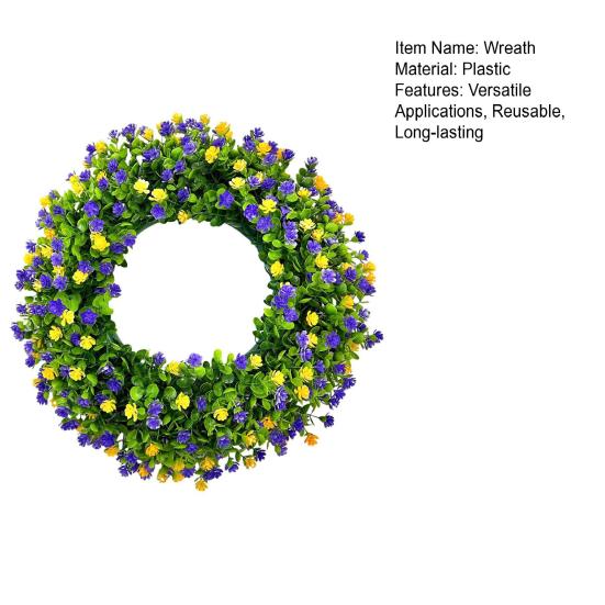 Прочная пластиковая конструкция: Изготовленный из высококачественных материалов, этот венок обеспечивает долговечное декоративное очарование и возможность повторного использования, что делает его устойчивым и экономически выгодным выбором для ваших сезонных декоративных нужд.