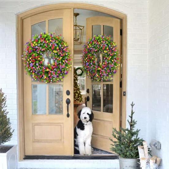Идеально подходит для входных дверей, гостиных, окон, стен, каминных полок, каминов, спален, вилл и фермерских домов.. Создайте живую и радостную атмосферу с этим универсальным венком, подходящим для оформления интерьера, праздничных торжеств, свадеб и многого другого. Добавьте нотку красоты и элегантности любому случаю с этим потрясающим венком.