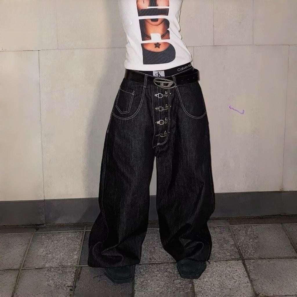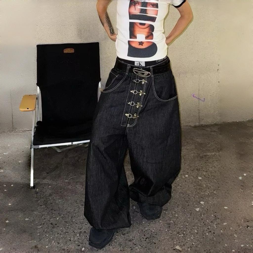ZYLLO Винтажные джинсы уличного стиля с высокой посадкой и широкими штанинами, с дизайном с металлической пряжкой