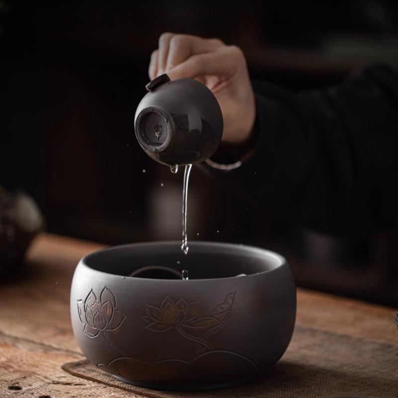 Бытовая керамическая чаша для омывания кистей, маленькое ведро для чайной заварки, резервуар для воды, чайный сервиз из фиолетовой глины, большая чаша для омывания