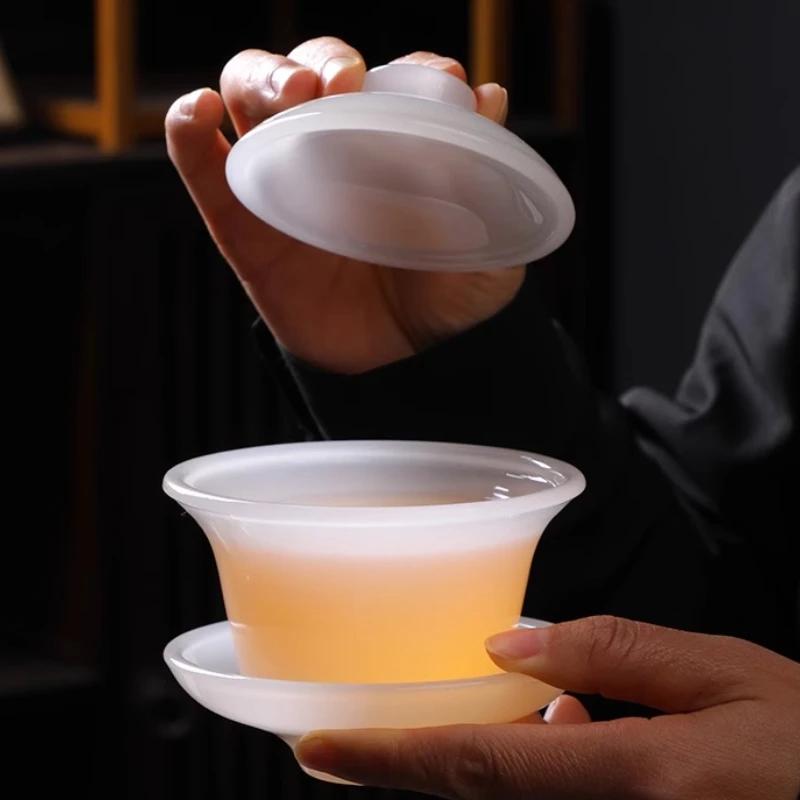 Легкая роскошь глазурованная чаша-крышка три таланта белый нефрит домашний набор для кунг-фу чая офисная встреча подарок для гостя нефритовый фарфор