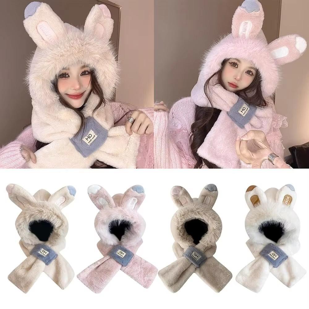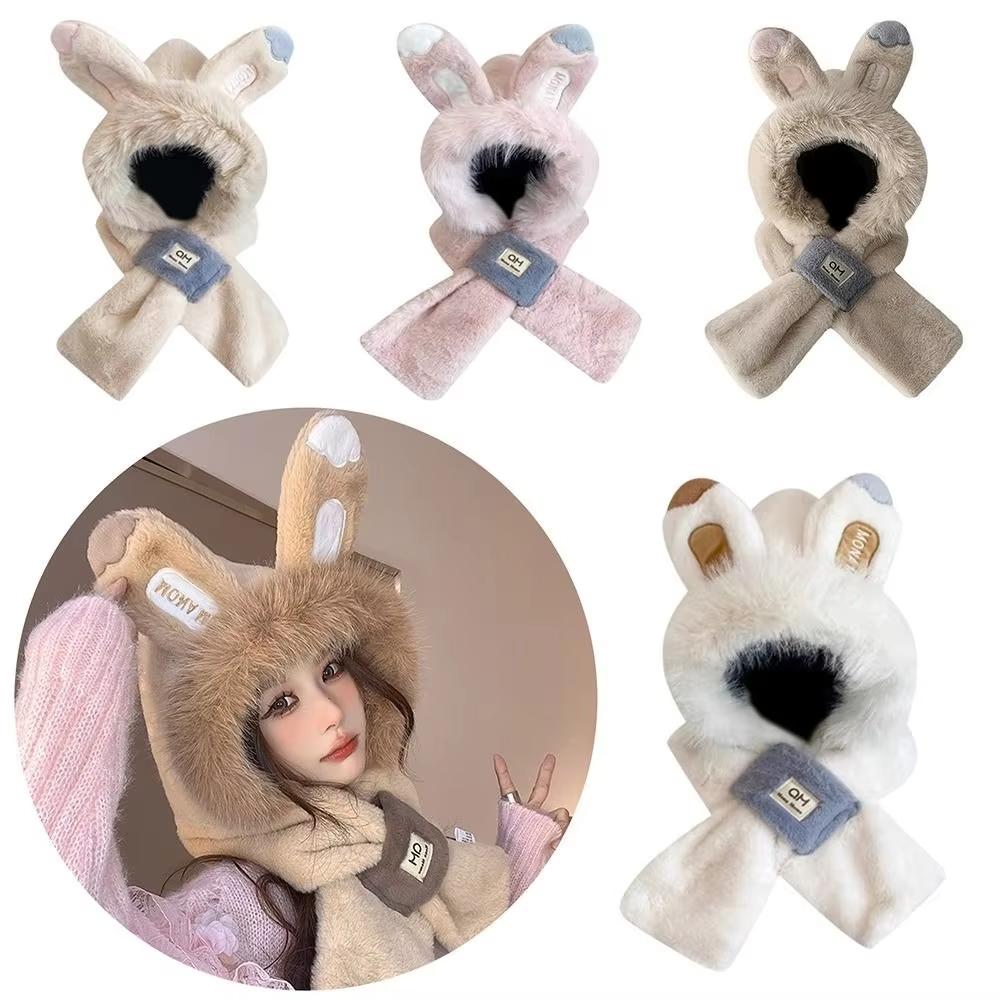 Милая защита ушей шарф шапка ветрозащитная кроличьи уши плюшевый шарф шапка плюшевая теплая шапка осень зима
