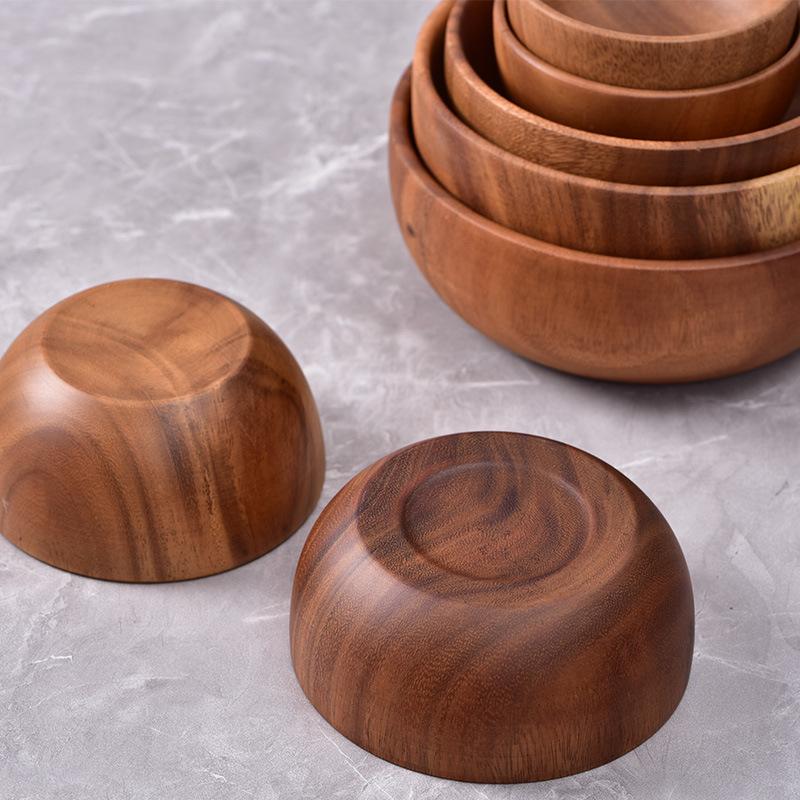 НОВАЯ Натуральная Деревянная Салатница Ручной Работы Классическая Большая Круглая Салатница из Дерева Акации Тарелки для Салата Супа Обеда Премиальная Кухонная Утварь