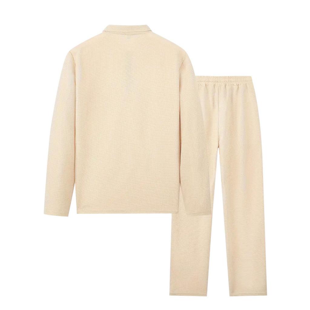 Мужской однотонный повседневный спортивный костюм, полосатая рубашка с длинным рукавом, топ с квадратным вырезом на молнии, комплект брюк на кулиске