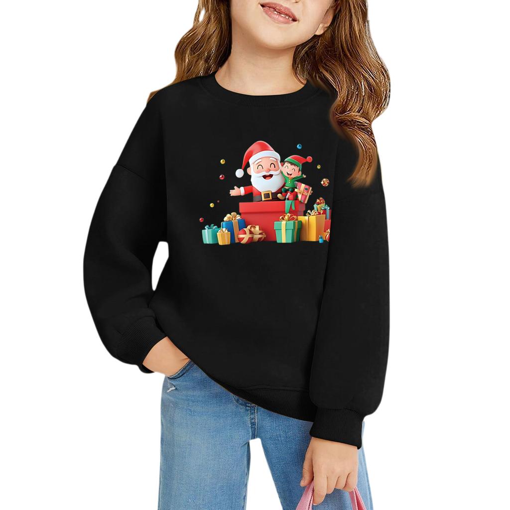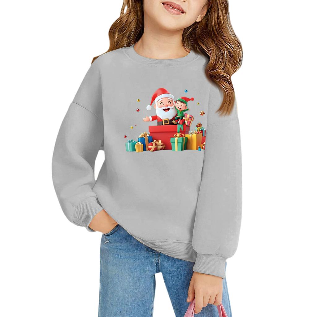 Рождественские пуловеры с круглым вырезом для девочек, детские топы с принтом