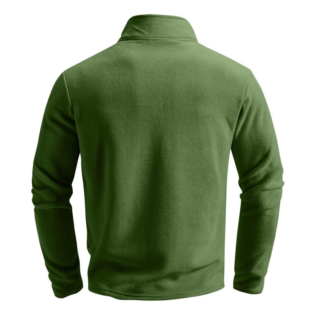 Мужской повседневный однотонный топ с воротником-стойкой и полумолнией, с длинным рукавом, мужская флисовая толстовка-пуловер с капюшоном