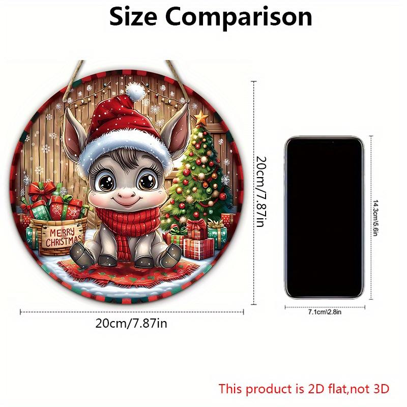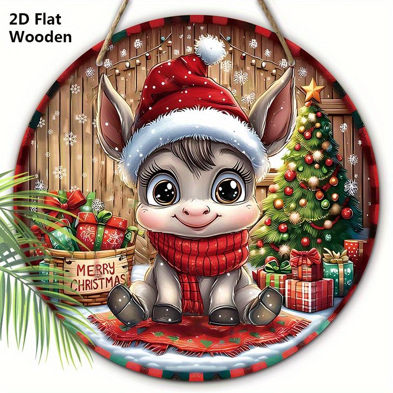 Деревянная рождественская табличка с очаровательным узором маленького ослика - Круглая табличка Navidad для входной двери, настенный декор - Идеальный рождественский подарок