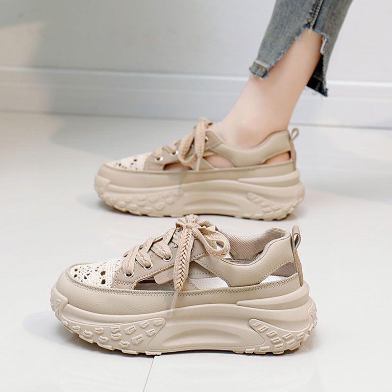 Летняя сетчатая обувь женская дышащая тонкая 2025 новая на толстой подошве кроссовки папы студенческие сетчатые спортивные туфли увеличивающие рост маленькие белые туфли