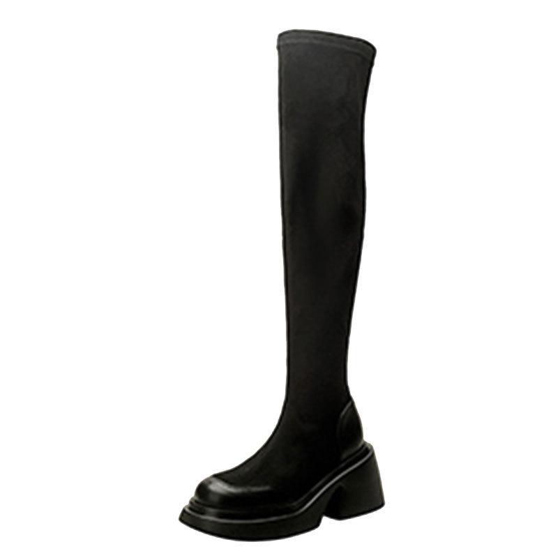 Замшевые узкие эластичные сапоги женские осень и зима 2025 новые маленькие сапоги увеличивающие рост водонепроницаемые сапоги выше колена на толстой подошве