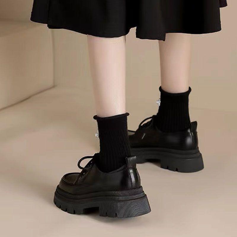 Женские кожаные туфли в британском стиле, весна 2025, новые, на толстой подошве, со шнурками, на мягкой подошве, универсальные туфли-лоферы в стиле ретро