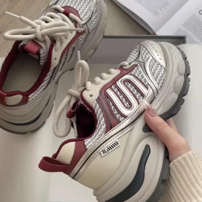 Красные папины кроссовки женские 2025 новые весенне-летние туфли на платформе взрывают высоту нишевые повседневные универсальные дышащие кроссовки