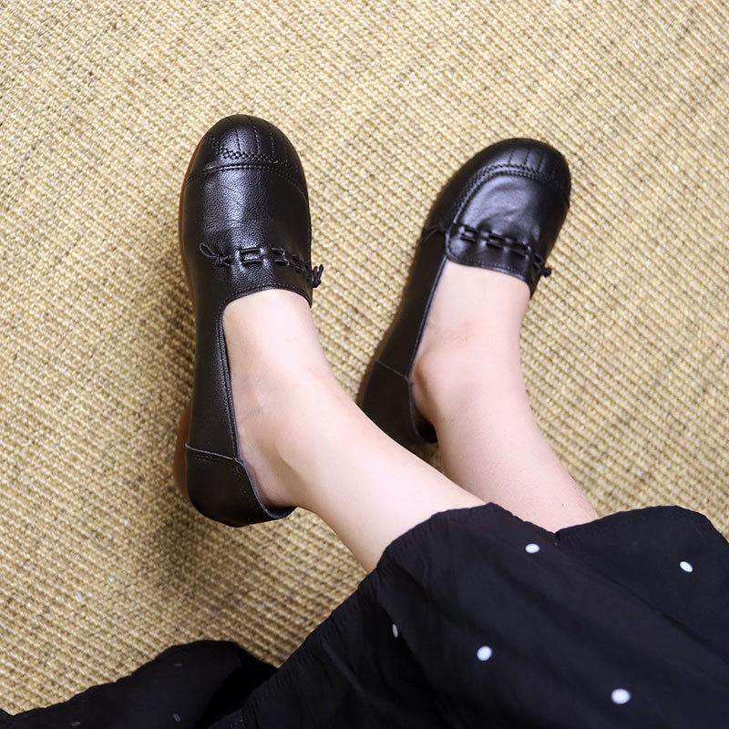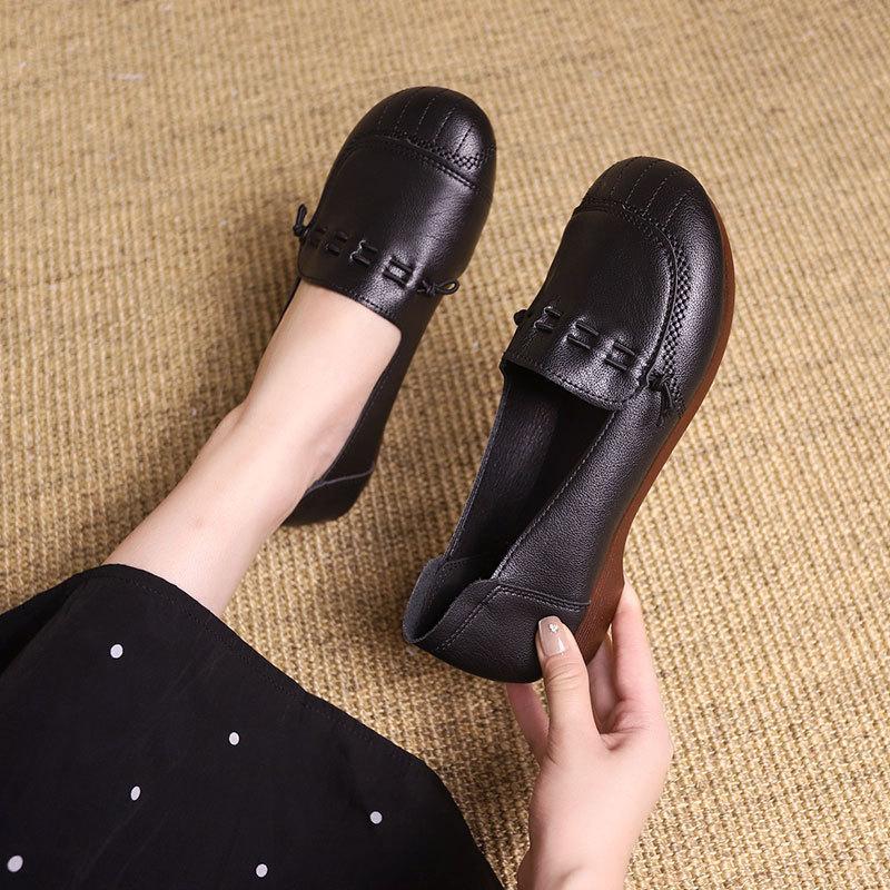 Удобные и не уставшие ноги, ретро туфли на мягкой подошве для женской осени 2025 года, новые туфли-лодочки на плоской подошве с круглым носком, маленькие кожаные туфли для мамы
