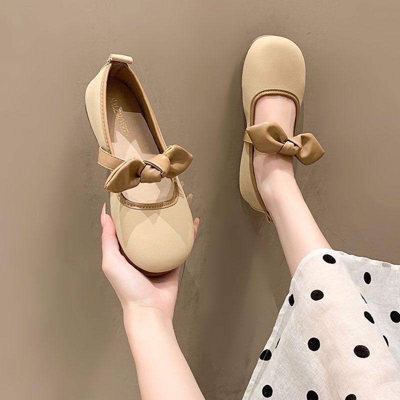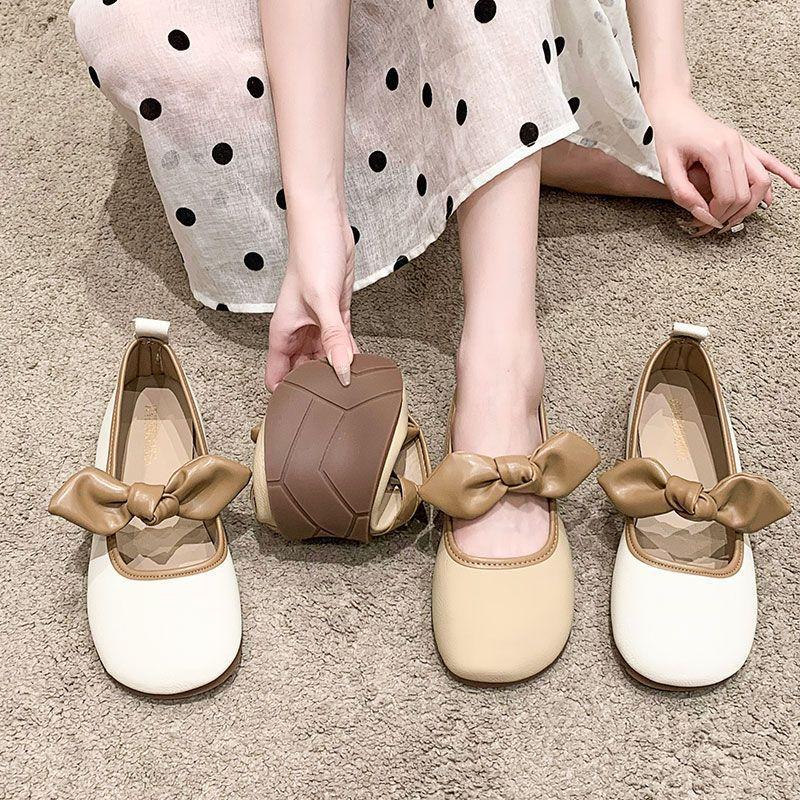 Нежный ветер пригородные туфли одинарные женские туфли на плоской подошве с одной педалью 2025 новые рабочие туфли с мелким бантом туфли Мэри Джейн