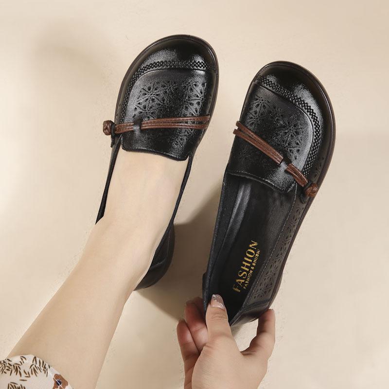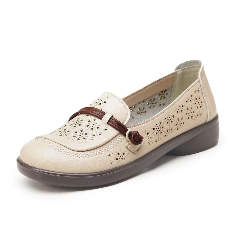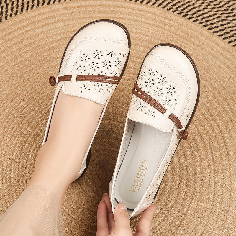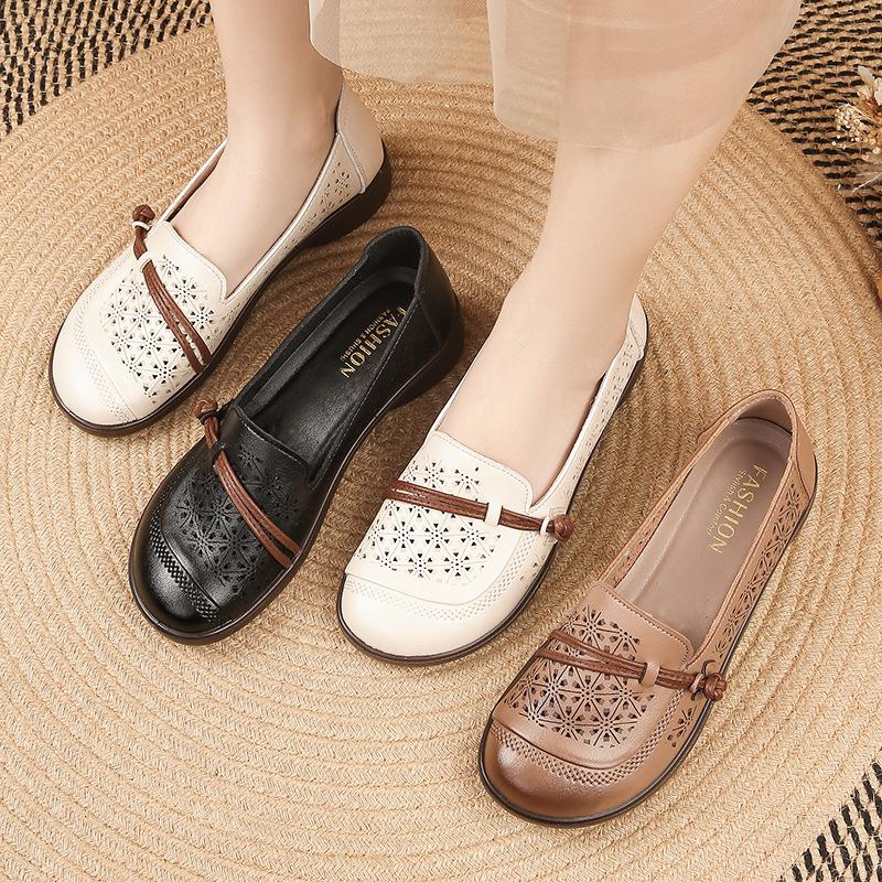 2025 летняя обувь для новой мамы сандалии с полыми отверстиями кожаные туфли на мягкой подошве для женщин среднего возраста и пожилых людей удобные плоские туфли