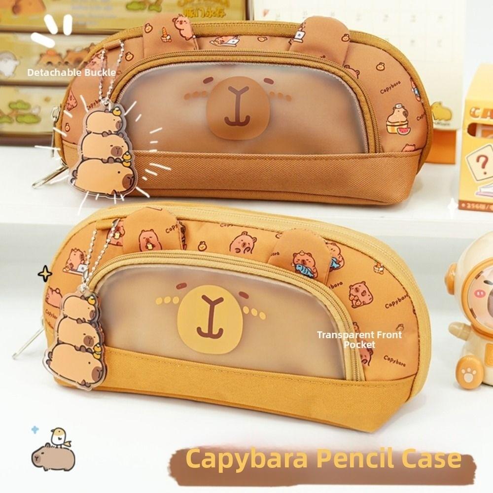 Cartoon Capibara Pencil Case Multi-layer Stationery Bag Kawaii Pencil Pouch School Supplies