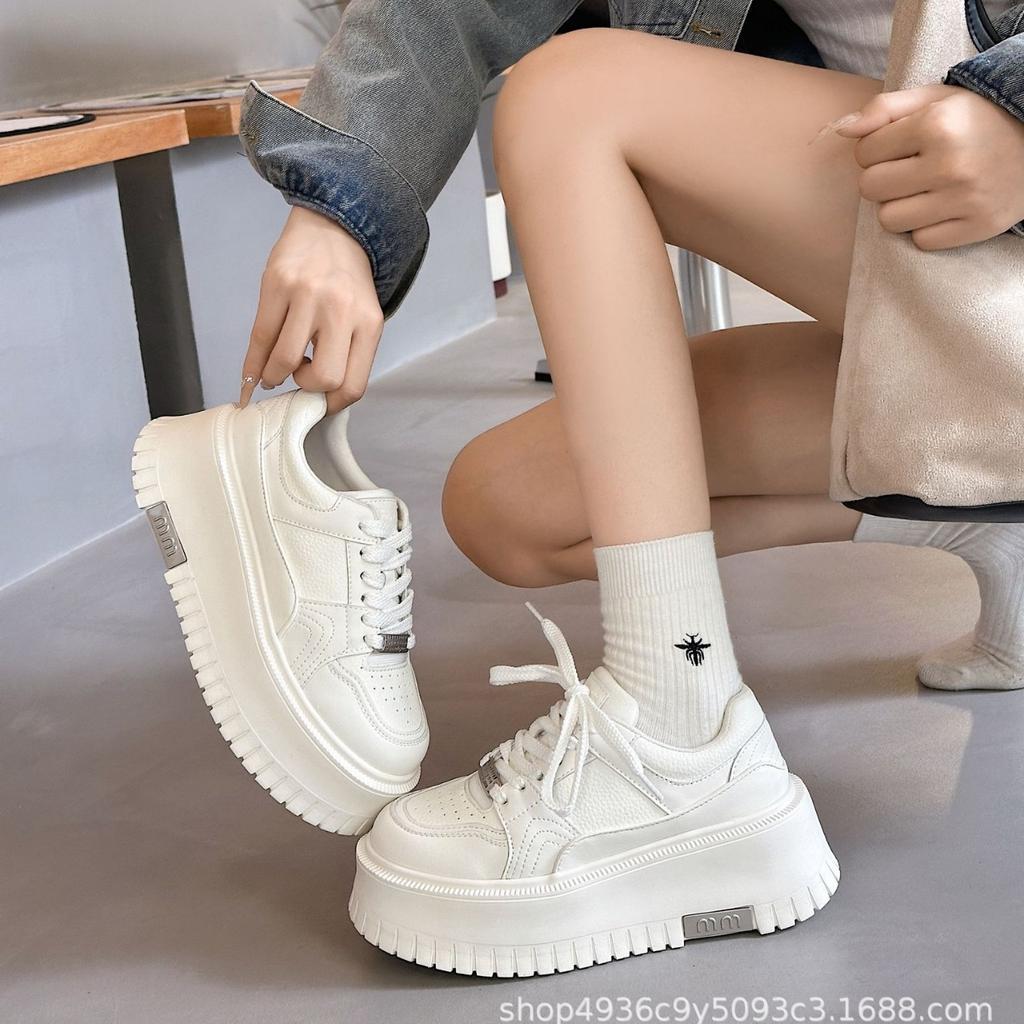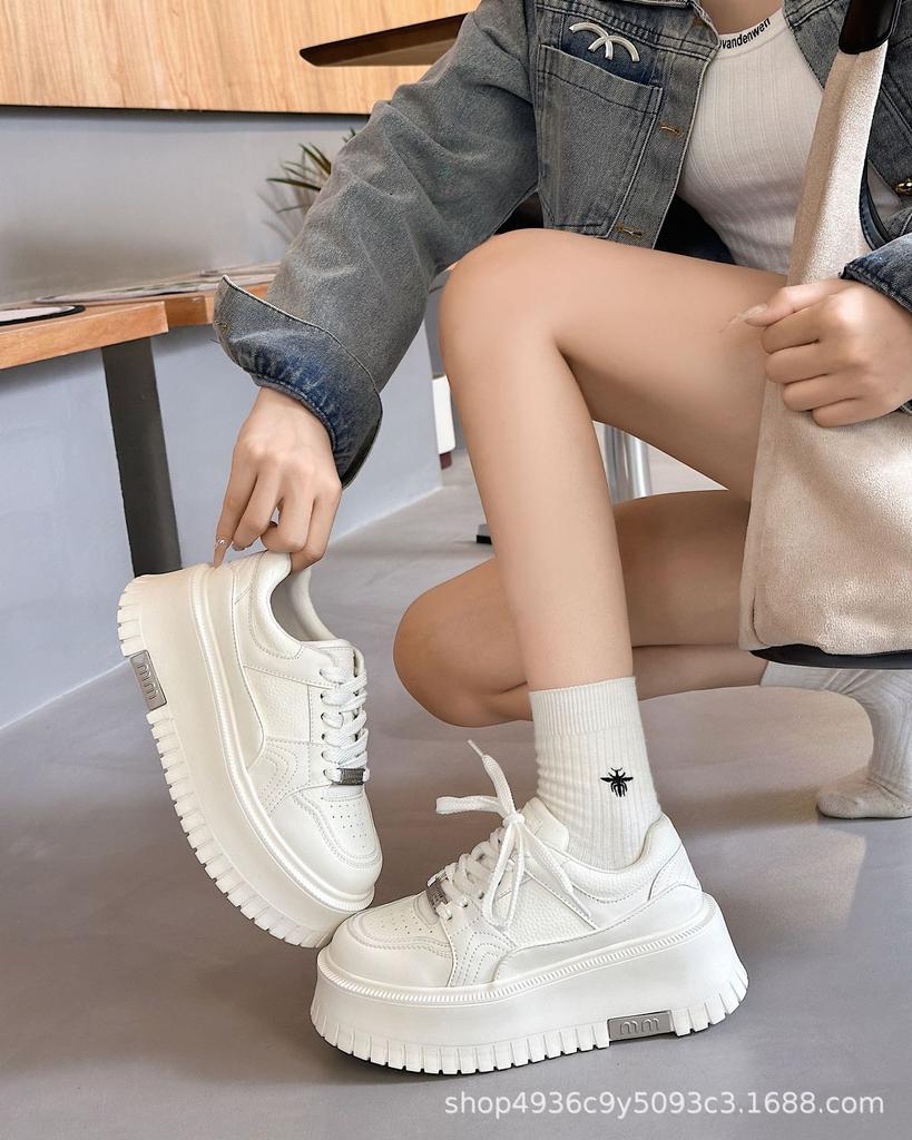 Платформа маффин кожаные маленькие белые туфли женские 2025 осень новые увеличение роста универсальные удобные модные повседневные спортивные туфли