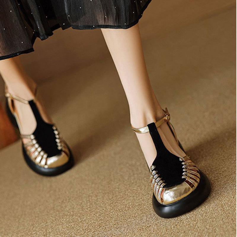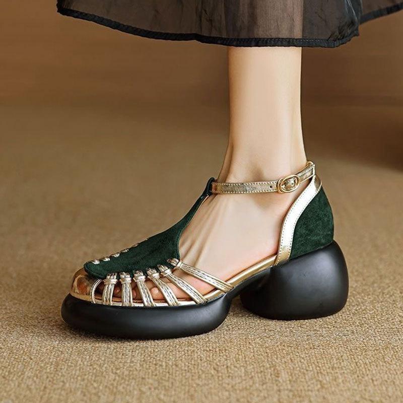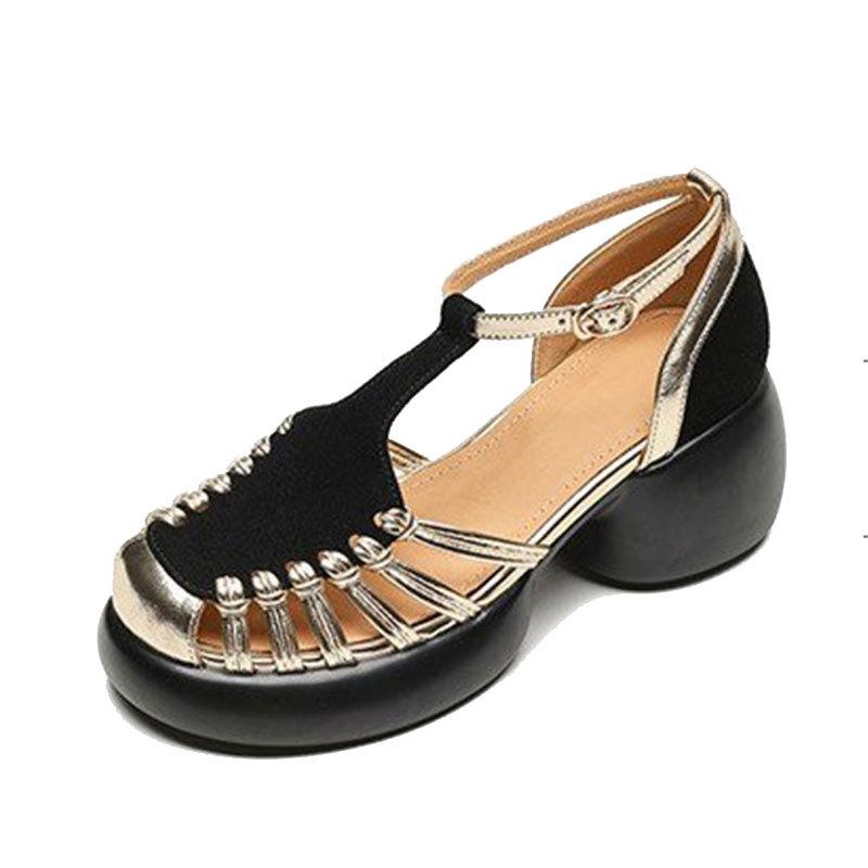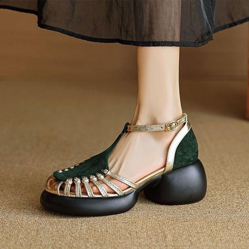 Удобные туфли-мюли на платформе, полые римские сандалии, женские, 2025, новый легкий дизайн, летние, с закрытым носком, на толстой подошве, на высоком каблуке
