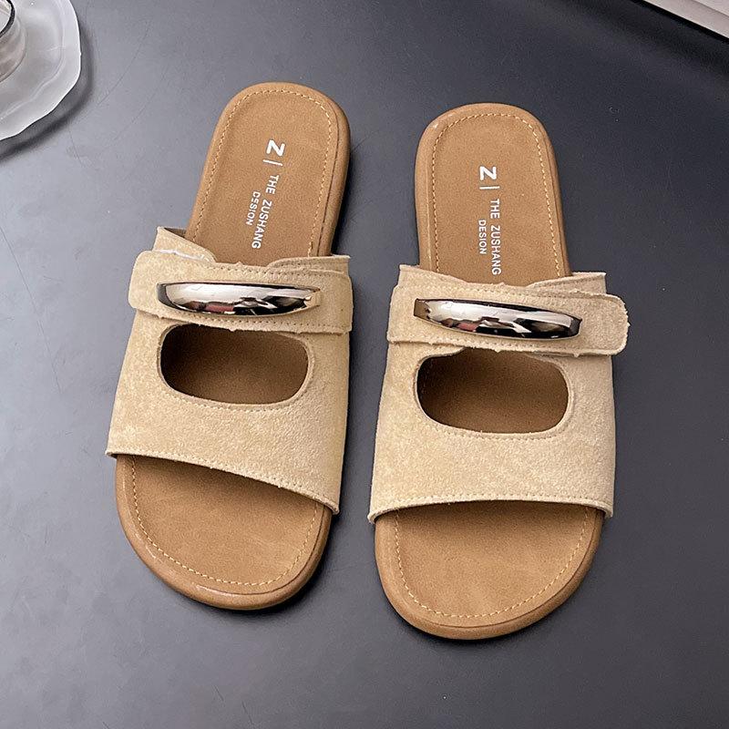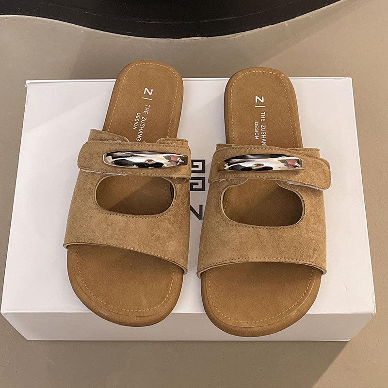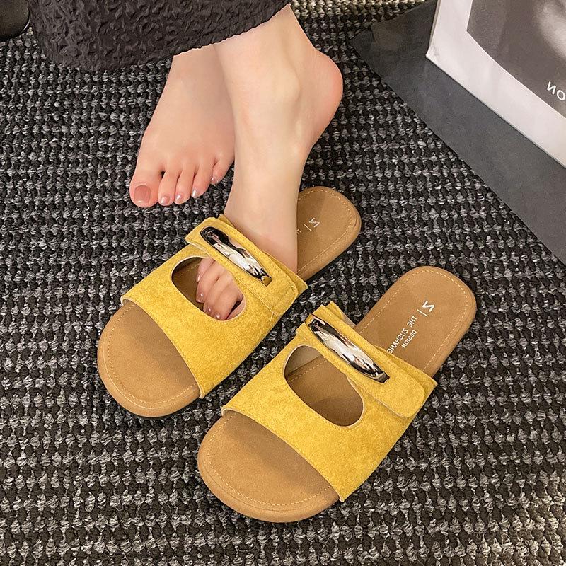 Крутые тапочки на липучке для женщин, новые летние модели 2025 года, для ношения с юбками, красивые однословные шлепанцы на мягкой подошве, нескользящие пляжные туфли