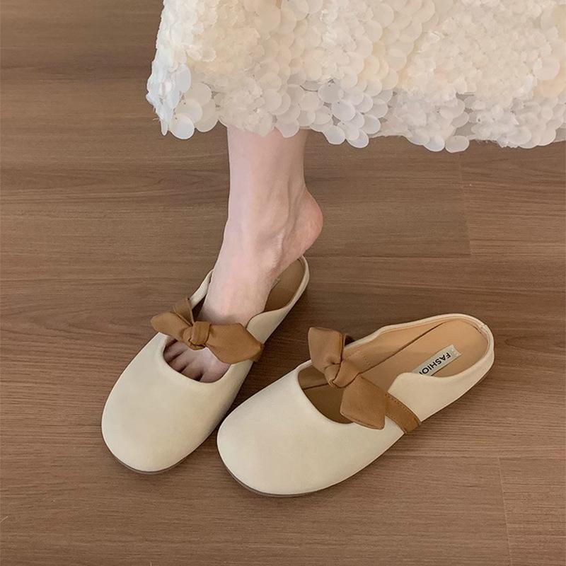 Баотоу полутапочки женские для улицы 2025 новый летний взрыв французский сказочный стиль бант мягкая подошва сандалии для беременных