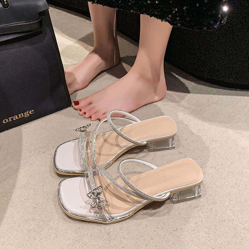 Французские туфли на толстом каблуке, женская летняя одежда 2025 года, новые босоножки на высоком каблуке со стразами и бантом в стиле феи