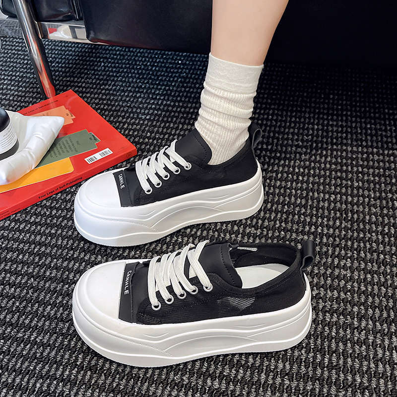 Маленькие белые туфли женские летние тонкие 2025 новые легкие дышащие сетчатые туфли на платформе, маленькие туфли на толстой подошве, увеличивающие рост