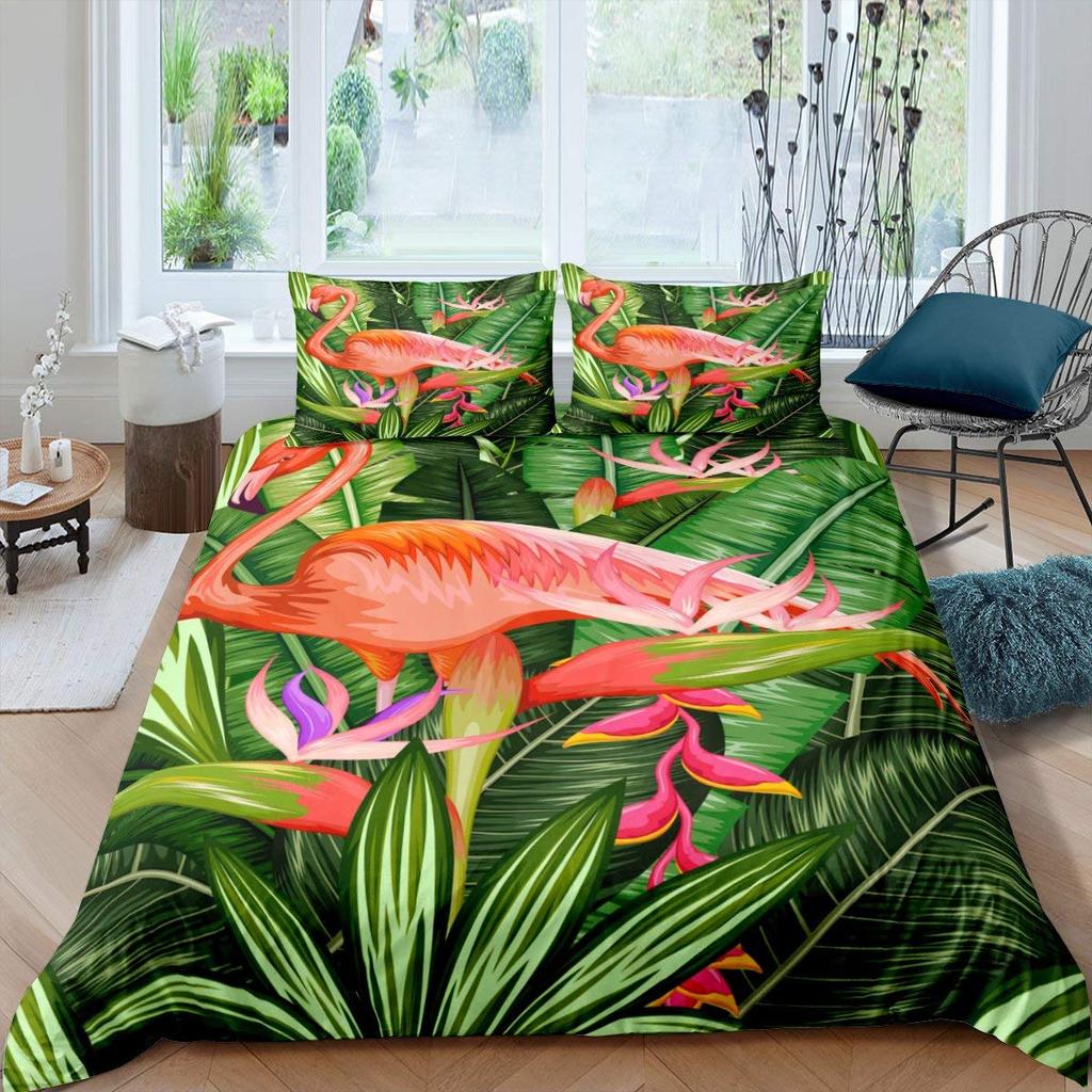 Комплект пододеяльника «Фламинго» Тропические листья Покрывало с рисунком пальм Постельный комплект Красочный полиэстеровый пододеяльник для детей