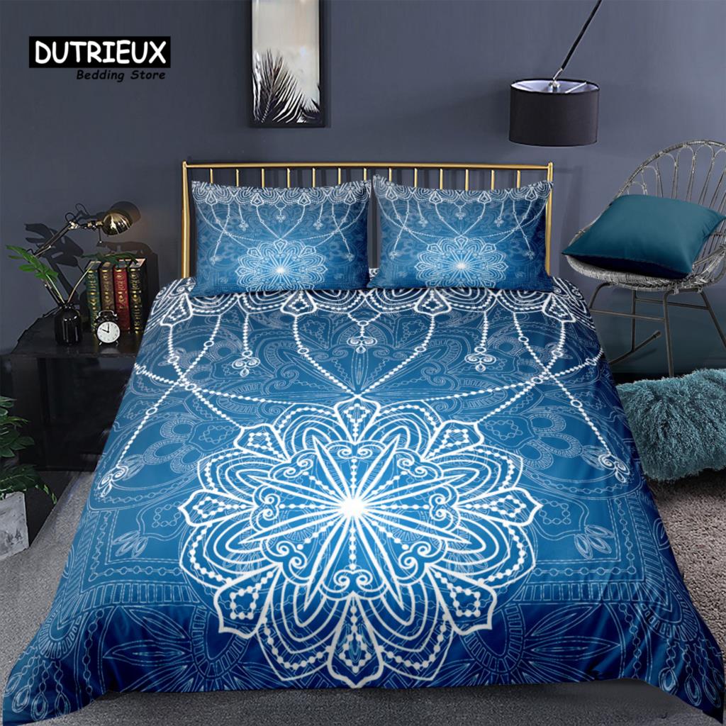 Роскошный 3D-принт «Темно-синяя мандала» для дома 2/3 предмета, удобный пододеяльник, наволочка, постельное белье, размер Queen и King, размер EU/US/AU