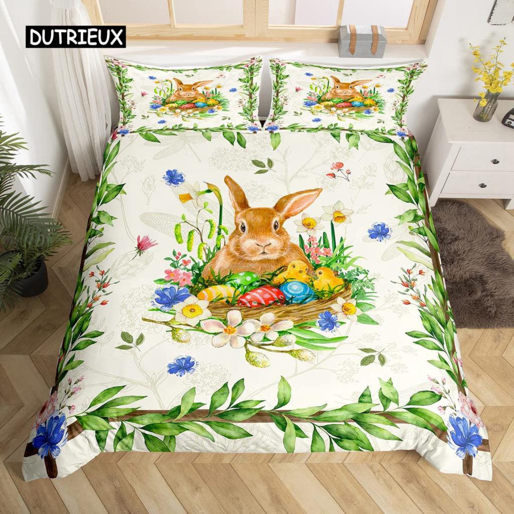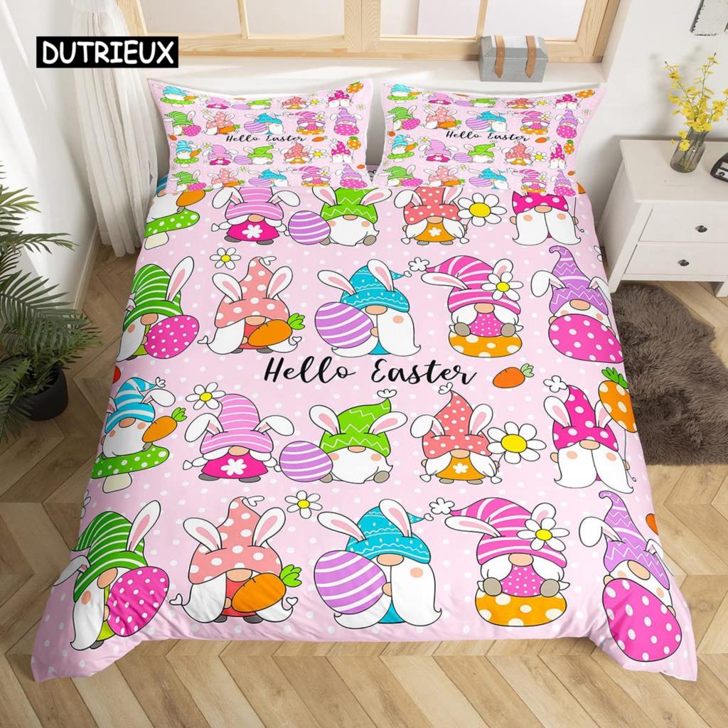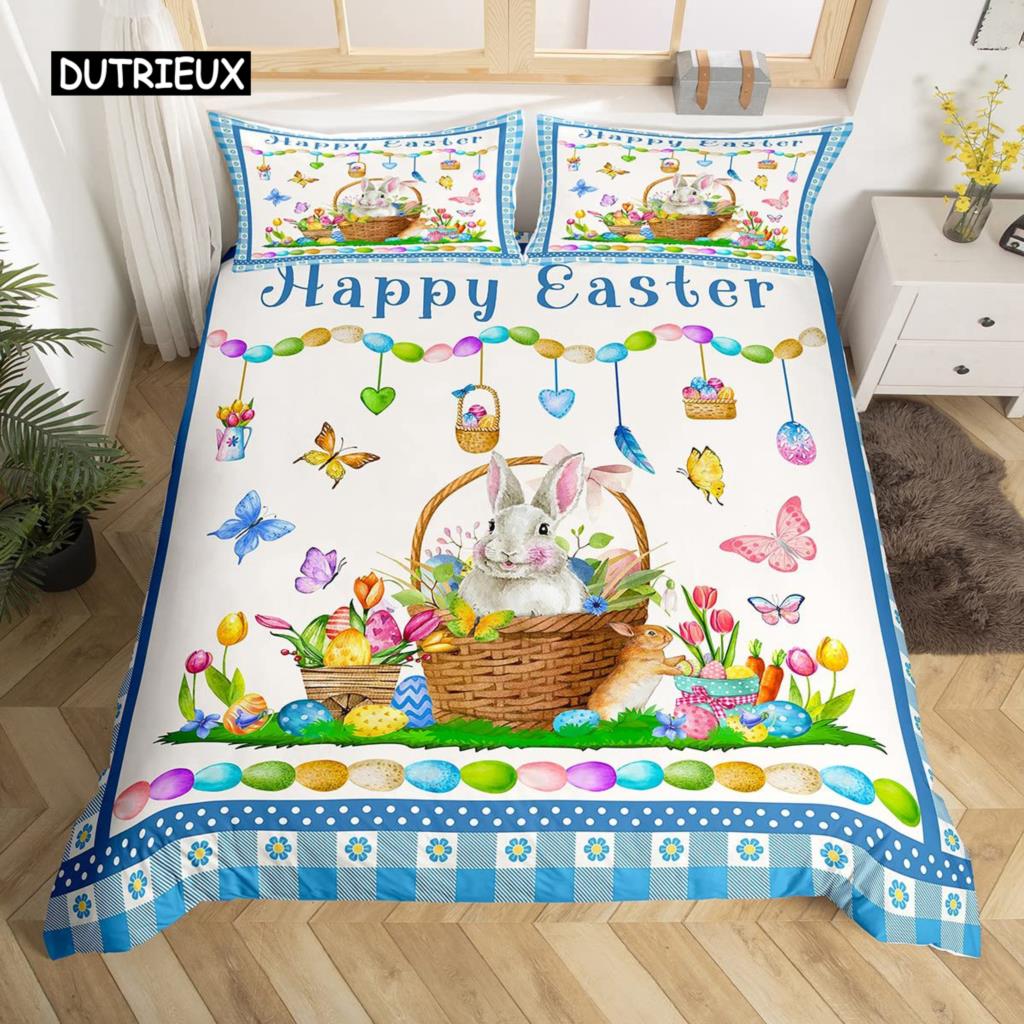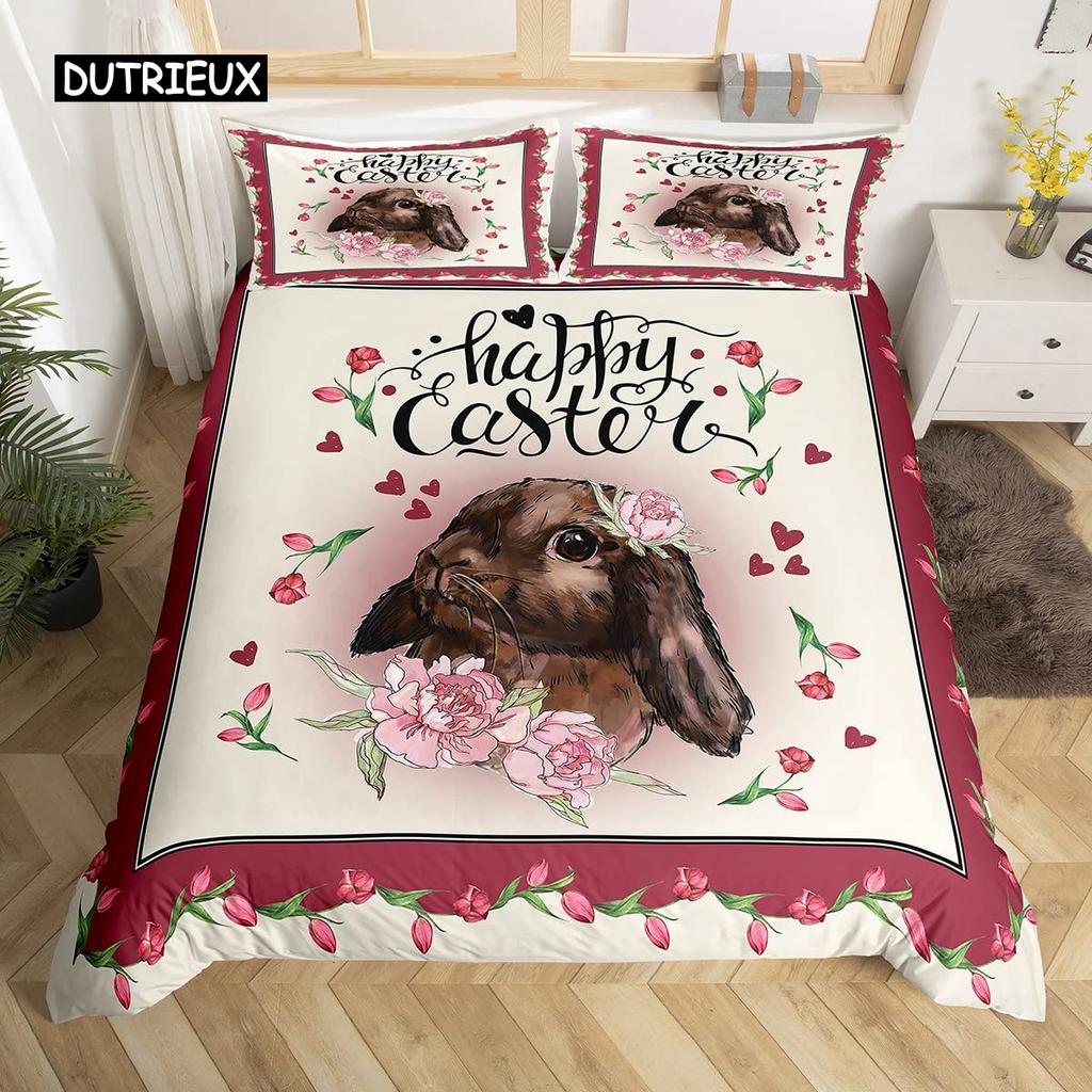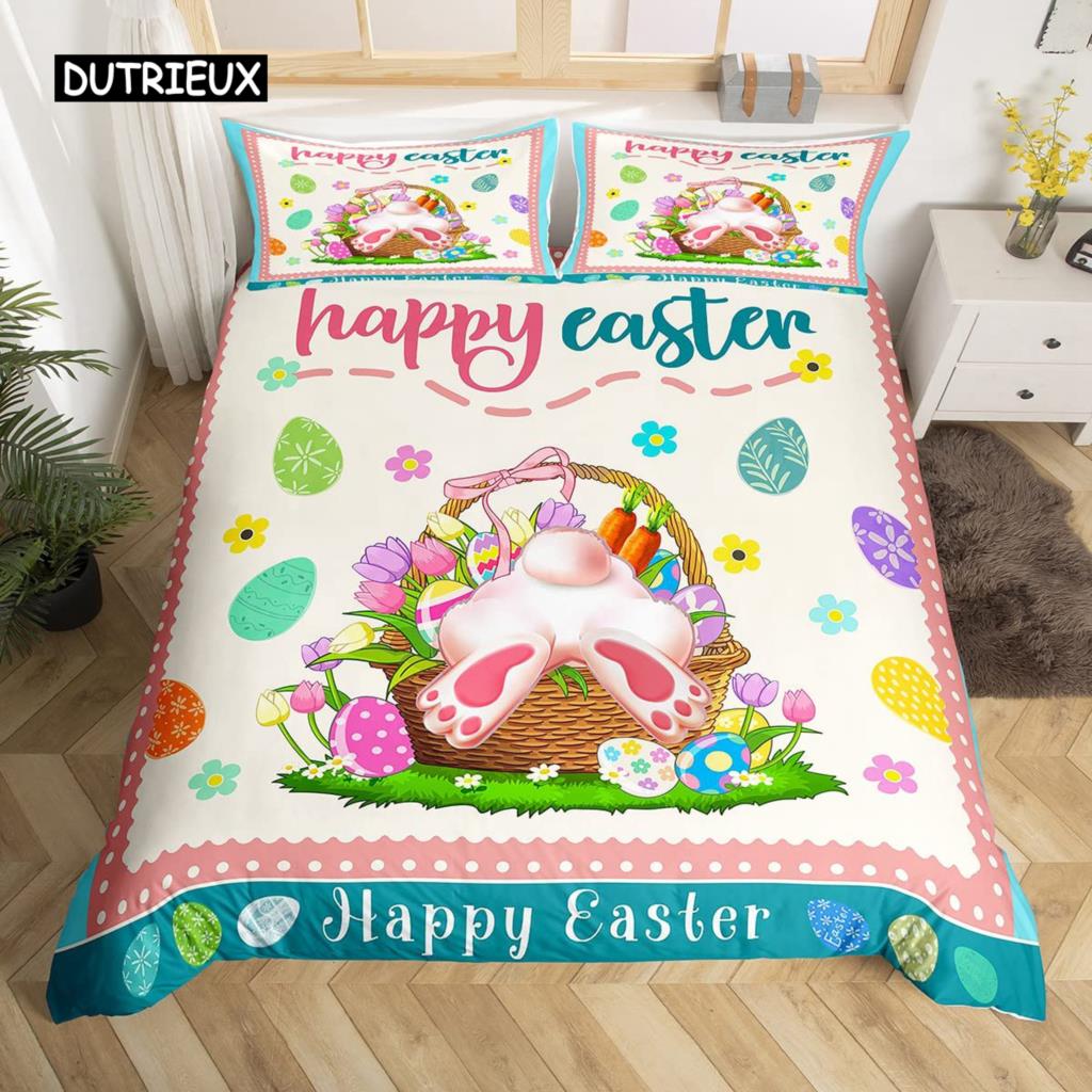 Пасхальный кролик хвост одеяло покрывало пастельно-розовый тюльпан цветы пододеяльник два пасхальных яйца кавайные животные комплект постельного белья пасхальный декор